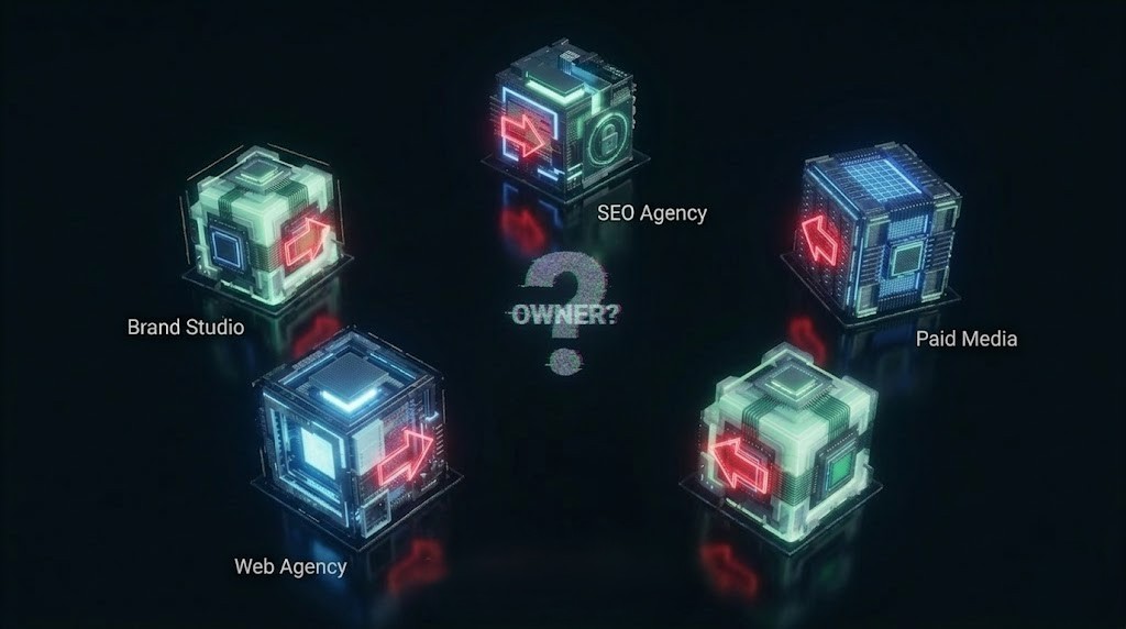 A branding studio that can't think about conversion. An ad agency doesn't understand brand. Each delivers their piece. Nobody owns the whole.